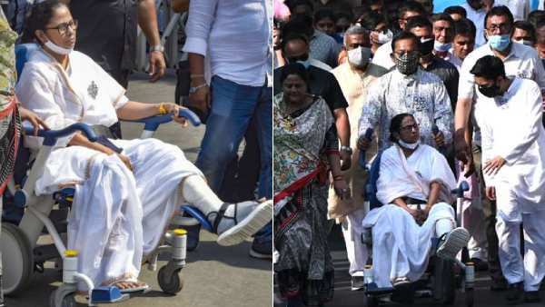 மேற்கு வங்க மாநிலம் ரேயபாரா பகுதியில் தீவிர பிரசாரம் மேற்கொண்ட மம்தா பானர்ஜியை சிலர் பிடித்து தள்ளியதாக கூறப்படுகிறது. இதில் மம்தாவின் இடது கால் மற்றும் மணிக்கட்டில் காயம் ஏற்பட்டது. இது திட்டமிட்ட சதி என்றும் சக்கர நாற்காலியில் வந்தாவது பிரசாரம் செய்வேன் என்றும் மருத்துமனையில் இருந்தபடி காலில் கட்டுப் போட்ட நிலையில் உருக்கமுடன் தெரிவித்தார் மம்தா. அதன்படி இன்று சக்கர நாற்காலியில் பிரசாரம் செய்தார் மம்தா.