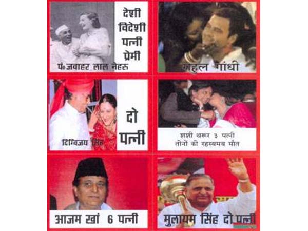 மேலும் சமாஜ்வாடி கட்சித் தலைவர் முலாயம்சிங் யாதவ் படத்தைப் போட்டு அவருக்கு 2 மனைவிகள் என்றும் மோடியை காட்டமாக விமர்சித்து வரும் சமாஜ்வாடியின் மூத்த தலைவரும் உ.பி. அமைச்சருமான ஆசாம் கானுக்கு 6 மனைவிகள் என்றும் போஸ்டரில் தெரிவிக்கப்பட்டுள்ளது.