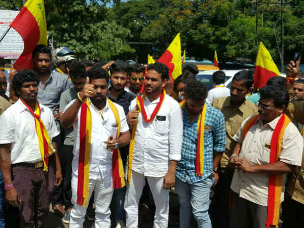 பெங்களூரிலுள்ள கன்னட திரைப்பட வர்த்தக சபை அருகேயுள்ள சிவானந்தா சர்க்கிளில் கண்டன கூட்டம் நடந்தது. இதில் நடிகர்கள் சிவராஜ்குமார், தர்ஷன், ரமேஷ் அரவிந்த், ஜக்கேஷ், உபேந்திரா, நடிகைகள் தாரா, ஸ்ருதி, ராகினி திவேதி, பாரதி விஷ்ணுவர்த்தன், லீலாவதி உள்ளிட்ட பலரும் பங்கேற்றனர். சுதீப் சூட்டிங்கிற்காக வெளி மாநிலத்தில் இருப்பதால் அவர் பங்கேற்கவில்லை.