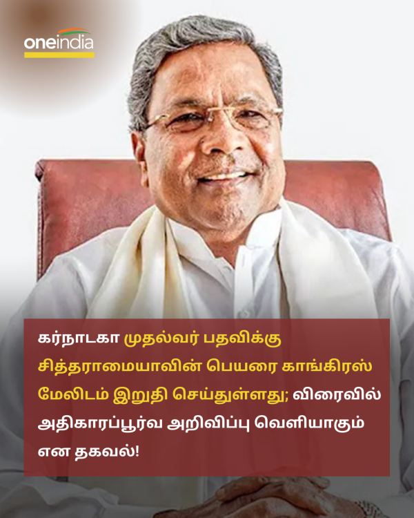 கர்நாடக ஆளுநரை சந்தித்து சித்தராமையா ஆட்சி அமைக்க உரிமை கோரினார். இதை ஏற்று சித்தராமையாவை ஆட்சி அமைக்க வருமாறு கர்நாடக ஆளுநர் தாவர்சாந்த் கெலாட் அழைப்பு விடுத்தார். முதல்வர் பதவியேற்பு விழா வரும் 20 ஆம் தேதி நண்பகல் 12.30 மணிக்கு கண்டீரவா ஸ்டேடியத்தில் நடைபெறுகிறது.