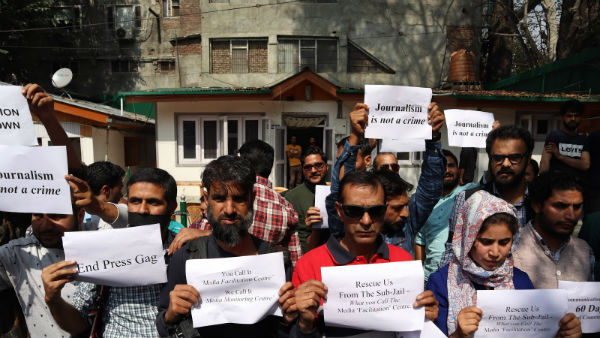 தங்களது மாநிலத்தில் 60 நாட்களாக தகவல் தொடர்பு துண்டிக்கப்பட்டு இருப்பதை கண்டித்தும் ஊடக சுதந்திரத்தை வலியுறுத்தியும் பத்திரிகையாளர்கள் பதாகைகளை பிடித்திருந்தனர். மேலும் பத்திரிகையாளர்கள் தொழில் என்பது ஒரு குற்றமும் அல்ல. பத்திரிகையாளர்கள் ஊதுகுழல்களும் அல்ல எனவும் அவர்கள் முழக்கம் எழுப்பினர்.