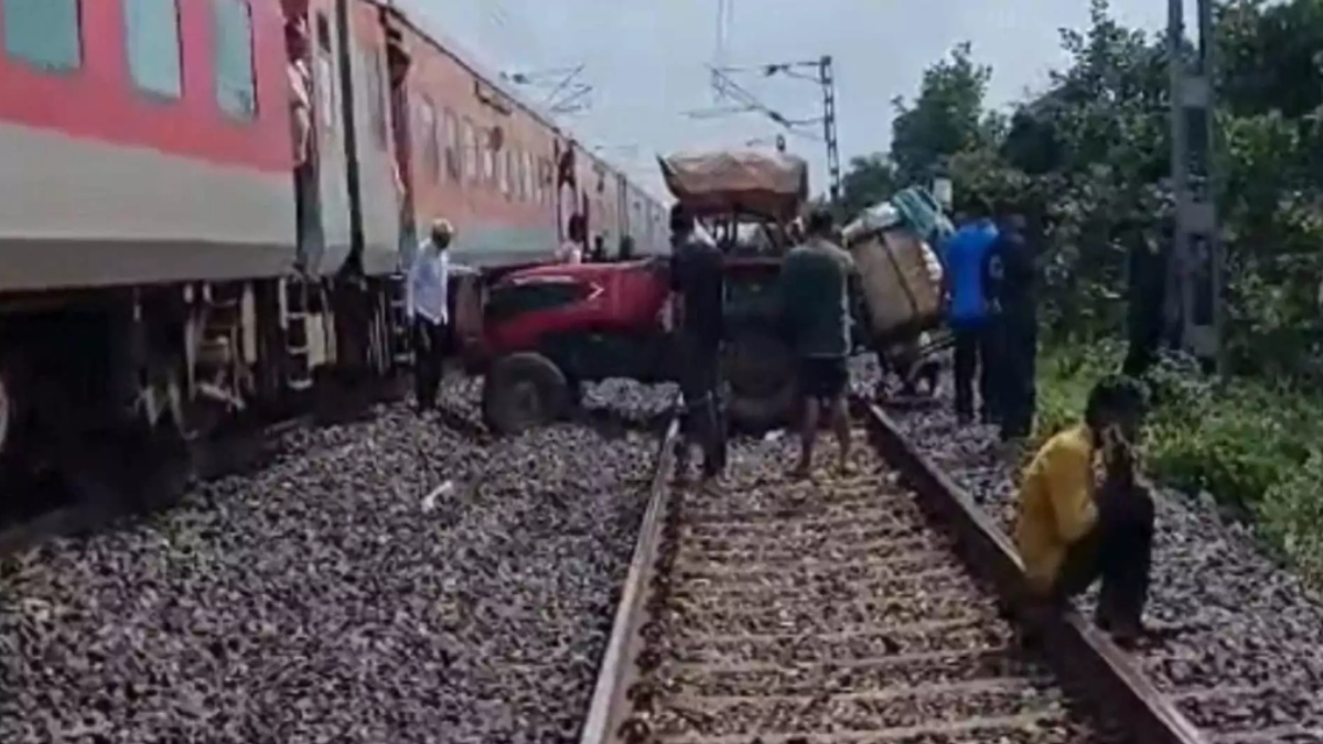 ரயில் தவிர்ப்பு: உடனடியாக சுதாரித்து கொண்ட டிரைவர், எமர்ஜென்ஸி பிரேக்கை போட்டு, ரயிலை நிறுத்தினார்.. இதனால், டிராக்டர் மீது மோதாமல் ரயில், அதற்கு முன்பேயே நின்றுவிட்டது.. இதனால், பெரும் விபத்து தவிர்க்கப்பட்டது.