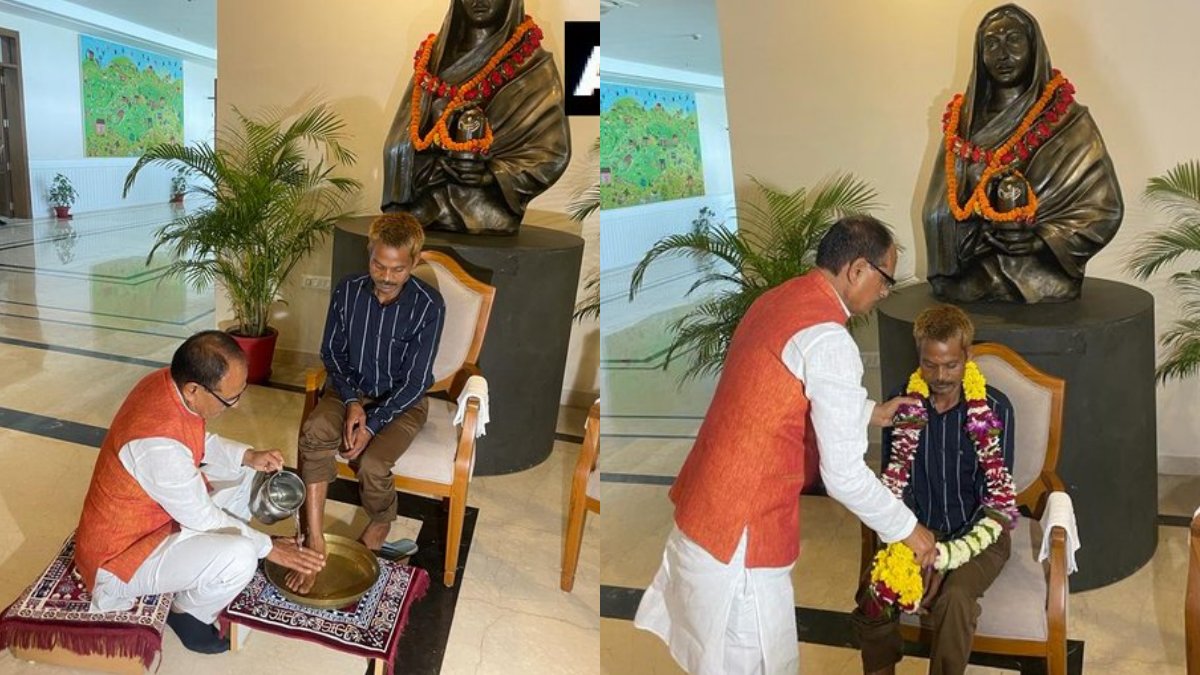 நாட்டை உலுக்கிய கொடூரம்: பழங்குடியின இளைஞரின் காலை கழுவி மன்னிப்பு கேட்ட ம.பி முதல்வர் சிவராஜ் சிங்!