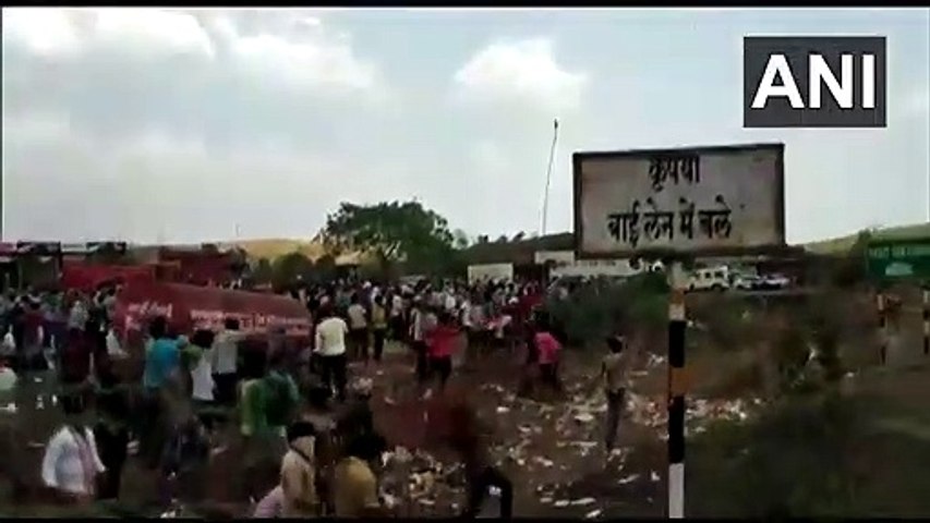மகாராஷ்டிரா- ம.பி. எல்லையில் இடம்பெயர் தொழிலாளர்கள் திடீர் போராட்டம்- கல்வீச்சால் பதற்றம்