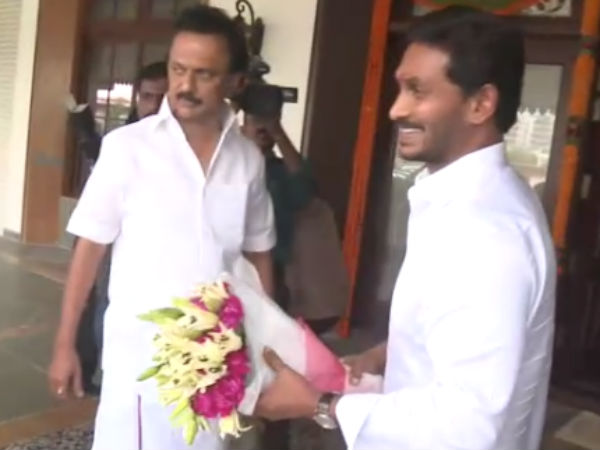 முக ஸ்டாலினுக்கு ஜெகன் மோகன் ரெட்டி உபசரித்து விருந்தளித்தார்
