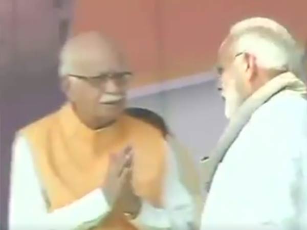 இந்த விழாவில் பங்கேற்பதற்காக பிரதமர் நரேந்திர மோடி வந்திருந்தார். அப்போது அங்கிருந்த முரளி மனோகர் ஜோஷி, அமித் ஷா, ராஜ்நாத் சிங் என ஒவ்வொருவராக எழுந்து கைகூப்பி வணக்கம் தெரிவித்தனர். அப்போது பிரதமர் மோடியும் பதிலுக்கு வணக்கம் செலுத்திச் சென்றார்.