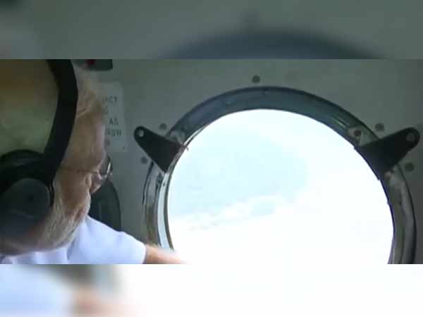 இந்த ஆய்வுக் கூட்டத்திற்குப் பின்னர் வானிலை மேம்பட்டு காணப்பட்டதால் ஹெலிகாப்டர் மூலம் வானில் பறந்து ஆய்வு செய்ய முடிவு செய்யப்பட்டது. இதையடுத்து பிரதமர் மோடி ஹெலிகாப்டரில் சென்று வான் வழியாக சேத விவரங்களைப் பார்வையிட்டார். அவருடன் முதல்வர் பினராயி விஜயன் உள்ளிட்டோரும் ஹெலிகாப்டரில் பயணித்தனர்.