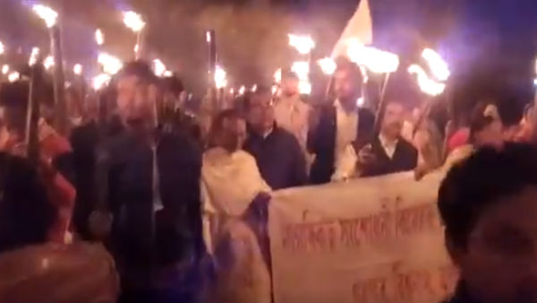 இதில் மோடி, அமித் ஷா மற்றும் பாஜகவிற்கு எதிராக மாணவர்கள் கோஷம் எழுப்பினார்கள். இதனால் அங்கு பெரிய அளவில் பரபரப்பு ஏற்பட்டது. போராட்டத்தில் கலந்து கொண்ட எல்லோரும் கையில் தீ பந்தம் வைத்து இருந்ததால், போராட்டத்தை பார்க்கவே பெரிய வியப்பாக இருந்தது குறிப்பிடத்தக்கது.