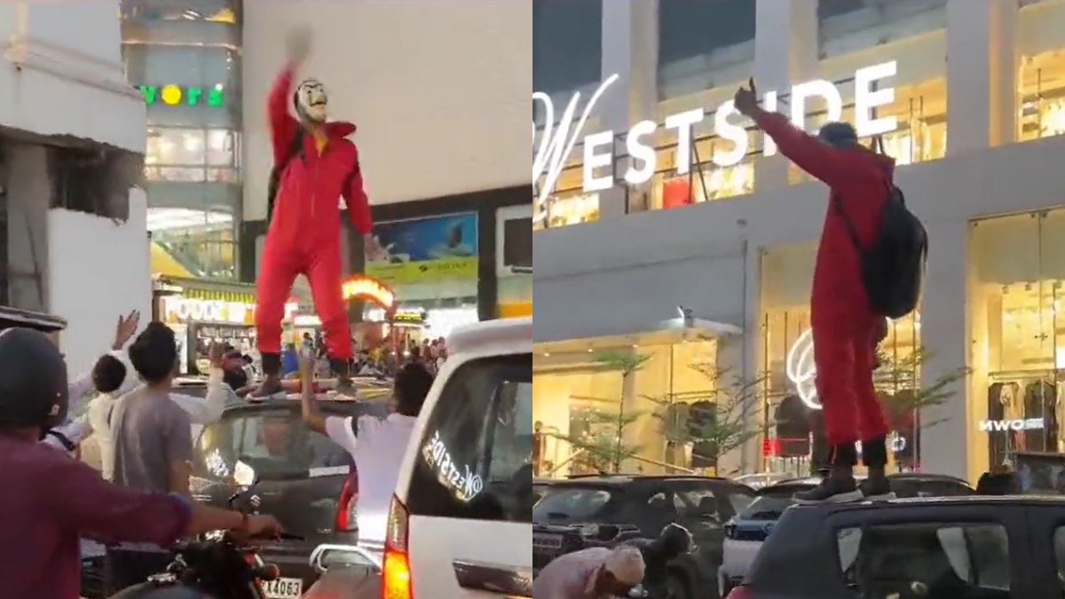 மணி ஹெய்ஸ்ட்: அந்த வீடியோவில் ஜெய்ப்பூரில் உள்ள ஒரு பரபரப்பான சந்தையில் மணி ஹெய்ஸ்ட் உடை அணிந்த அந்த நபர், காருக்கு மேல் ஏறி நின்று கொண்டு பண மழை பொழிகிறார். காரில் சிவப்பு ஜம்ப்சூட் உடை மற்றும் மாஸ்க் அணிந்த அந்த நபர் ரூ. 20 நோட்டுகளை அள்ளி வீசியுள்ளார். இதனால் அங்கே அவரை சுற்றி பொதுமக்கள் திரண்டனர். நேற்று மாலை இந்தச் சம்பவம் நடந்ததாகக் கூறப்படுகிறது.