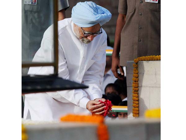 பிரதமர் மன்மோகன்சிங், காங்கிரஸ் தலைவர் சோனியா காந்தி ஆகியோர் இன்று காலை காந்தி நினைவிடத்துக்கு சென்று மலர் தூவி அஞ்சலி செலுத்தினார்கள். அவர்களுடன் மத்திய அமைச்சர்கள் மற்றும் பிரமுகர்களும் சென்று அஞ்சலி செலுத்தினர்.