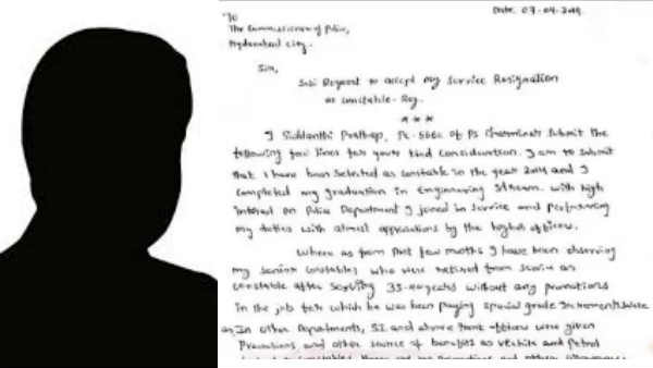 அதில், 'சார்மினார் ஸ்டேஷனில் சித்தாந்தி பிரதாப் என்னும் நான் சில கோரிக்கைகளை உங்களின் கவனத்திற்கு முன்வைக்கிறேன். கடந்த 2014-ம் ஆண்டு தெலங்கானா காவல்துறையில் கான்ஸ்டபிளாக வேலைக்கு சேர்ந்தேன். காவல்துறையில் நன்றாக செயல்பட வேண்டும், என்ற ஏராளமான ஈடுபாட்டுடன்தான் இந்த வேலைக்கு வந்தேன். இதுவரைக்கும் என் கடமையை சரியாக செய்துள்ளேன்.