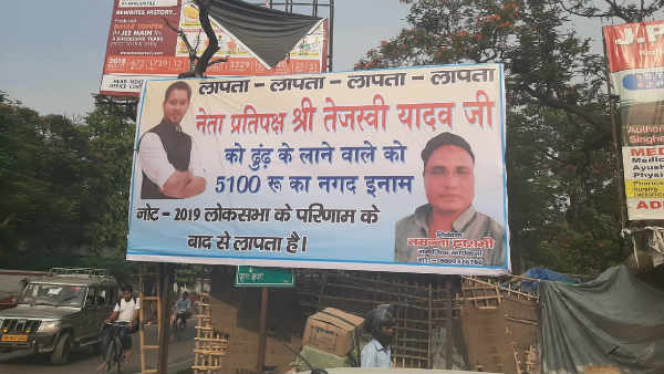 ஆர்ஜேடி தலைவர் தேஜஸ்வியை கண்டுபிடித்து தந்தால் ரூ5,100 பரிசு... ஒட்டியாச்சு போஸ்டர்!