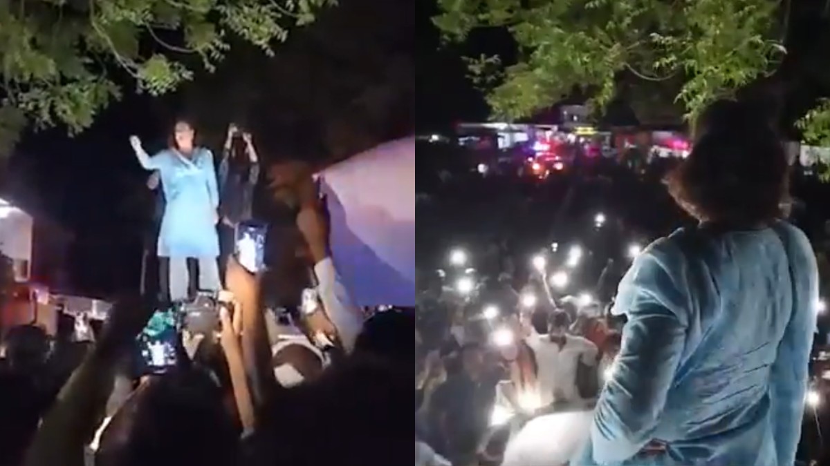 "மைக் இல்லையா.. பிரச்சனை இல்லை.." மொபைல் டார்ச் வெளிச்சம் போதும்.. வேன் மீது ஏறி பிரியங்கா அதிரடி