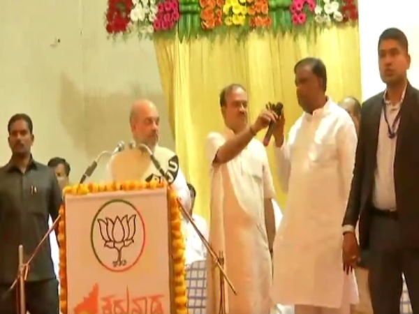 மைசூருவில் அமித்ஷா பங்கேற்ற கூட்டத்தில் திடீரென முழக்கங்கள் எழுப்பப்பட்டதால் அதிர்ச்சி அடைந்தார்.