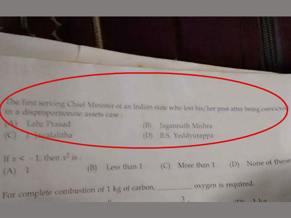 அ. லாலு பிரசாத் யாதவ், ஆ. ஜெகன்னாத் மிஸ்ரா, இ. ஜெ. ஜெயலலிதா, ஈ. எதியூரப்பா.