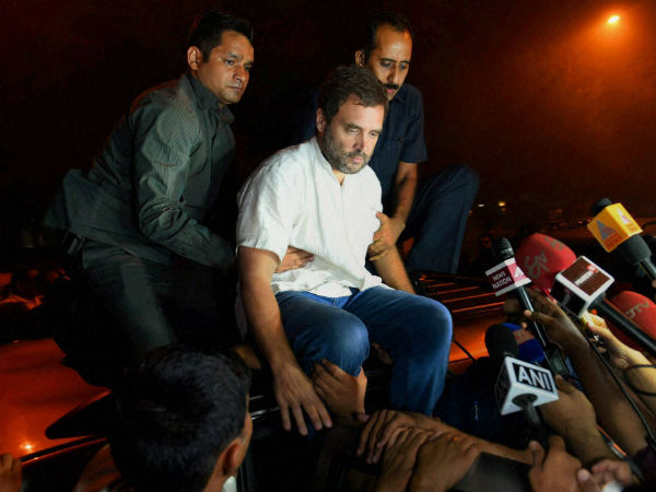 இது குறித்து டெல்லி போலீசார் கூறுகையில், முதலில் பைரோஸ் ஷா சாலை காவல்நிலையத்துக்கு அவரை அழைத்துச் சென்றோம். ஆனால் இறங்க மறுத்துவிட்டார் ராகுல். இதனால் துக்ளக் ரோசு காவல்நிலையத்துக்கு அழைத்து சென்றோம். ஆனால் தம்மை போலீசார் கடத்தியதாக ராகுல் காந்தி புகார் கொடுத்தார். பின்னர் அவர் புகார் கொடுக்க வேண்டாம் என நிலையை மாற்றிவிட்டார் எனக் கூறினர்.