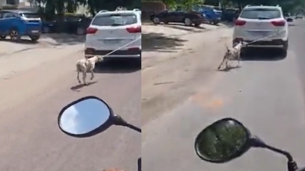 பின்னர் அவர் காரை ஓட்டிச் சென்றார். இதில் அந்த நாய் காரின் பின்னால் ஓடியது. ஒருகட்டத்தில் காரின் வேகம் அதிகரித்ததால் அந்த நாயால் ஓட முடியவில்லை. இதனால் சில கிலோமீட்டர் தூரம் சாலையில் அந்த நாய் இழுத்துச் செல்லப்பட்டது. பின்னர் ஓட முடியாமல் காரின் பின்னால் அந்த நாய் பரிதாபமாக ஓடியது.