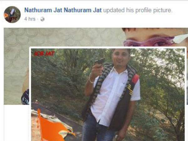 தொடர்ந்து நாதுராம் தலைமறைவாக இருப்பதாக ராஜஸ்தான் போலீசார் கூறி வரும் நிலையில் அவன் தன்னுடைய முகநூல் பக்கத்தில் புகைப்படம் ஒன்றை பதிவேற்றம் செய்துள்ளான். கையில் துப்பாக்கியுடன் தில்லாக போஸ் கொடுக்கும் அந்த புகைப்படத்தை பார்த்து பலரும் கொந்தளித்துப் போயுள்ளனர்.