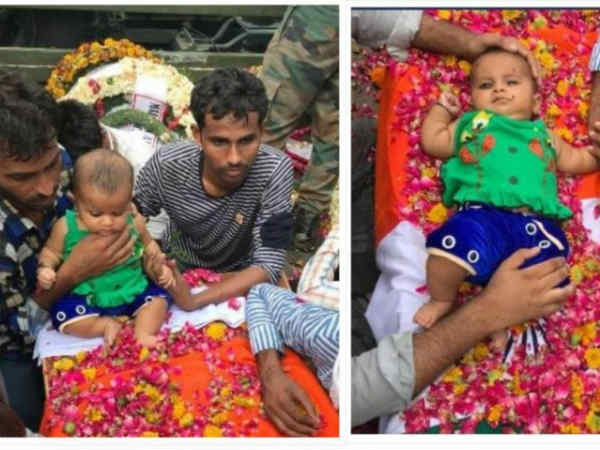 காஷ்மீர்: காஷ்மீரில் தீவிரவாதிகளால் சுட்டுகொல்லப்பட்ட ராணுவ வீரர் முகுத் பிகாரி மீனாவின் இறுதி சடங்கு இரண்டு நாள் முன்பு நடந்தது. முகுத் பிகாரி மீனாவின் 5 மாத குழந்தையின் புகைப்படம் இணையத்தில் வெளியாகி வைரலாகி உள்ளது.
