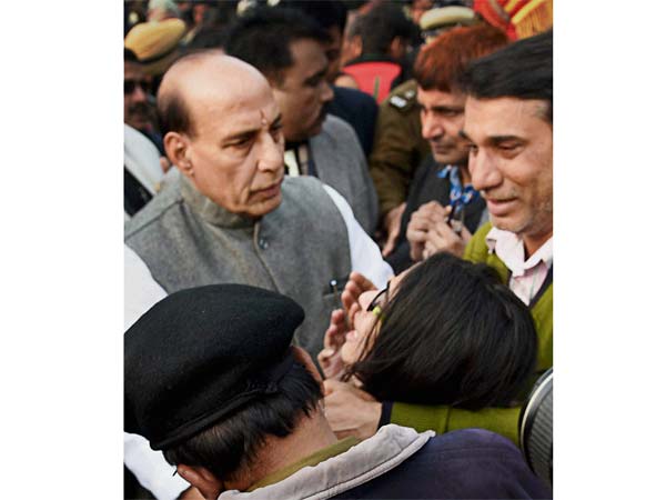 அவரைப் போலவே உறவினர்கள் பலரும் ராஜ்நாத் சிங்கைச் சூழ்ந்து கொண்டு இன்னும் எத்தனை உயிரைப் பலி கொடுக்கப் போகிறீர்கள் என்று சரமாரியாக கோபத்துடன் கேட்டனர். அவர்களை அமைச்சர் அமைதிப்படுத்தி ஆறுதல் கூறினார்.