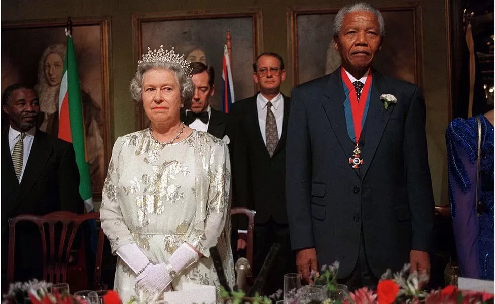 தென்னாப்பிரிக்காவில் வெள்ளை இன சிறுபான்மையினர் ஆட்சிக்கு எதிராகப் போராடிய அந்நாட்டுத் தலைவர் நெல்சன் மண்டேலாவுடன், ராணி எலிசபெத் தனிப்பட்ட முறையில் நல்லுறவு பேணினார். ராணியின் மறைவுக்கு நெல்சன் மண்டேலா அமைப்பு இரங்கல் தெரிவித்துள்ளது. "அவர்கள் இருவரும் அவ்வப்போது தொலைபேசியில் அழைத்து பரஸ்பரம் ஒருவர் மற்றவரது முதல் பெயரை சொல்லி பேசுவார்கள். இது அவர்களிடம் பரஸ்பரம் நிலவிய அன்பையும், மதிப்பையும் காட்டுகிறது" என்று அந்த இரங்கல் குறிப்பில் அந்த அமைப்பு கூறியுள்ளது.