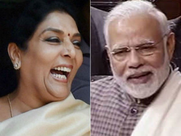 காங்கிரஸ் கட்சியை சேர்ந்த ராஜ்ய சபா உறுப்பினர் ரேணுகா சவுத்திரி மோடியைச் சபையில் கிண்டல் செய்து சிரித்துள்ளார். இது அங்கு பெரும் பரபரப்பை ஏற்படுத்தியது.