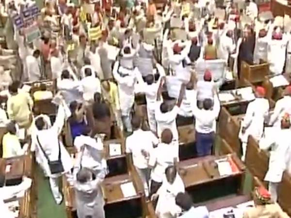 உத்தரப் பிரதேச முதல்வராக யோகி ஆதித்யாநாத் பதவியேற்ற பிறகு நடைபெற்ற முதல் சட்டப் பேரவை கூட்டத்தில் எதிர்க்கட்சிகள் ரகளையில் ஈடுபட்டனர்.