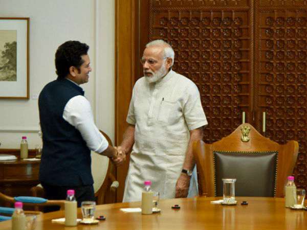 இதுதொடர்பாக பிரதமர் நரேந்திர மோடியும் தனது டிவிட்டர் பக்கத்தில் பதிவிட்டுள்ளார். அதில் சச்சின் உடன் ஒரு நல்ல சந்திப்பு இருந்தது. அவரது வாழ்க்கை பயணம் மற்றும் சாதனைகள் ஒவ்வொரு இந்தியனையும் பெருமைகொள்ள செய்கிறது. 1.25 பில்லியன் மக்களுக்கும் ஊக்கமளிக்கிறது என தெரிவித்துள்ளார்.