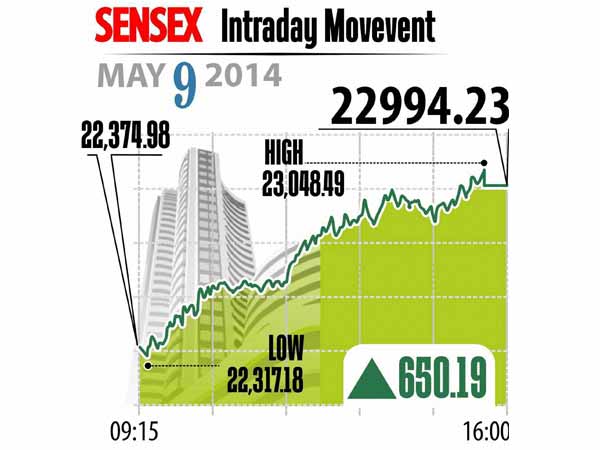 இருப்பினும் 2013ம் ஆண்டு செப்டம்பர் மாதத்திற்கு பிறகு ஒரே நாளில் 650 புள்ளிகள் என்ற உயர்வை சென்செக்ஸ் சந்தித்தது இதுவே முதல் முறை என்பதால் பங்குச் சந்தை வட்டாரத்தில் மகிழ்ச்சி காணப்பட்டது.