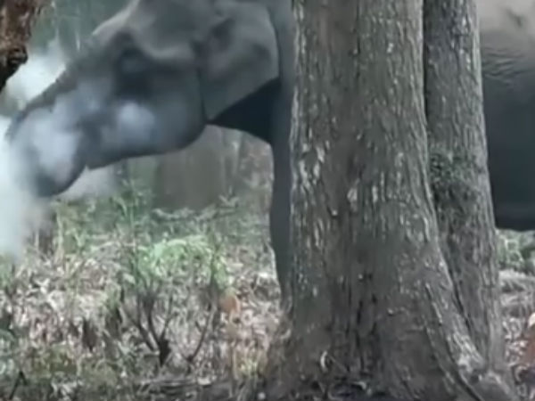 கர்நாடக மாநிலம் நாகர்ஹோல் காட்டில் கடந்த 2016ம் ஆண்டு ஏப்ரல் மாதம் புலிகளின் தடத்தை ஆய்வு செய்யும் பணியில் இந்திய வனவிலங்கு பாதுகாப்பு அமைப்பினர் ஈடுபட்டிருந்தனர். அப்போது, பெண் யானை ஒன்று மரத்தின் கீழ் நின்று புகையை உமிழ்ந்து கொண்டிருக்கும் விசித்திரக் காட்சியை அவர்கள் கண்டனர்.