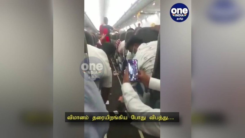 அப்போது அங்கு வீசிய பலத்த புயலில் விமானம் சிக்கியதால் தரையிறங்க முடியாமல் தட்டுத் தடுமாறியது. விமானம் பயங்கரமாக குழுங்கியதால் சீட் பெல்ட் அணியாமல் அமர்ந்திருந்த பயணிகள் கீழே விழுந்தனர். சிலர் மீது விமானத்திற்குள் இருந்த பொருட்கள் விழுந்தன. 2 பயணிகள் மீது விமானத்தில் உணவு கொண்டு செல்லும் தள்ளுவண்டி விழுந்ததில் அவர்கள் படுகாயமடைந்தார்.