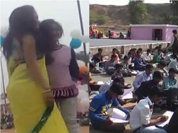 பள்ளி மைதானத்தில் டான்ஸர்கள் குத்தாட்டம்.. மொட்டை மாடியில் தேர்வு எழுதிய பரிதாப மாணவர்கள்