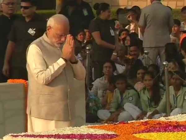 #WATCH Prime Minister Narendra Modi pays tribute to #MahatmaGandhi at Rajghat. #Gandhi150 pic.twitter.com/l2kk3bHeGf