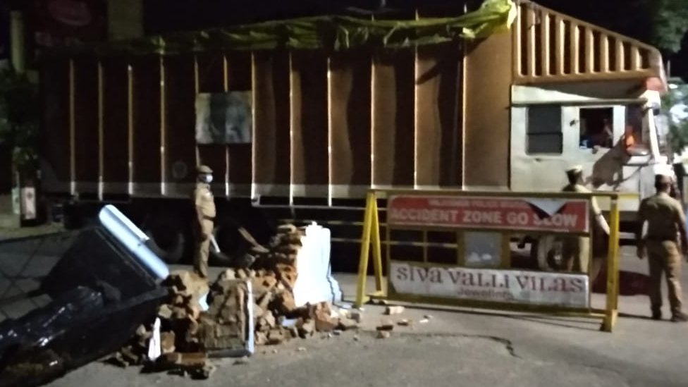 உடனடியாக சம்பவ இடத்திற்கு சென்ற காவல்துறையினர், அப்பகுதியில் மேற்கொண்டு அசம்பாவிதங்கள் நடைபெறாமல் இருக்க பலத்த போலீஸ் பாதுகாப்பில் போடப்பட்டது. இதனையடுத்து அங்கிருந்த லாரியை காவல்நிலையம் எடுத்து சென்றனர். மேலும் லாரி ஓட்டுநர் மச்சேந்திர ஷ்பலி என்பவரை கைது செய்துள்ளனர்.