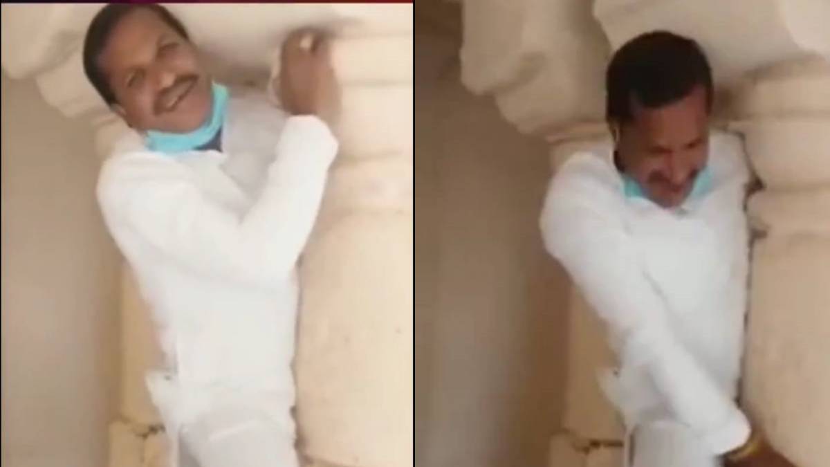 கோயில் தூண்களுக்கு நடுவே சிக்கிய பாஜக எம்எல்ஏ! "இதெல்லாம் நமக்கு தேவையா!" நக்கலடிக்கும் நெட்டிசன்கள்