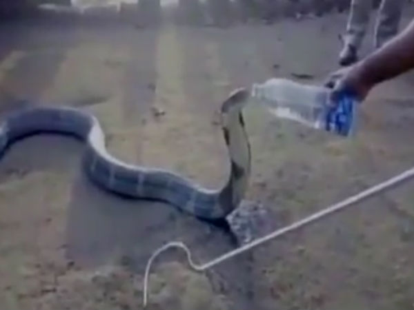 பெங்களூர்: தண்ணீர் பற்றாக்குறையால் பரிதவித்த ராஜ நாகத்திற்கு பாட்டிலில் தண்ணீர் கொடுத்த சம்பவம் கர்நாடகாவில் நடந்துள்ளது.