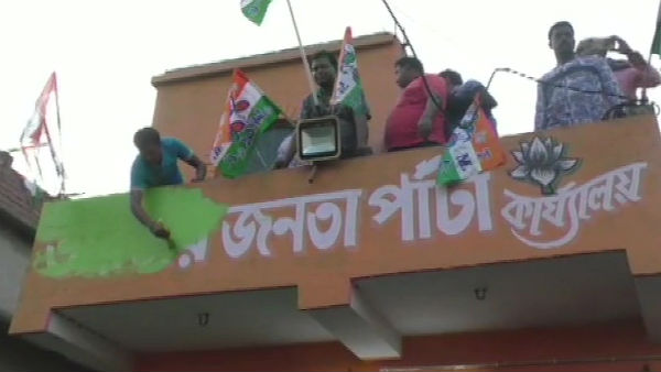 இடைத்தேர்தல் வெற்றி கொண்டாட்டமாம்- 4 பாஜக அலுவலகங்களை கைப்பற்றிய திரிணாமுல் காங்.