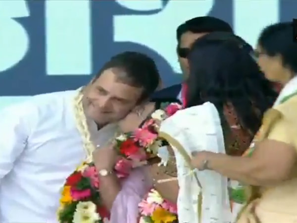 காந்திநகர்: பிரச்சார மேடையில் வைத்தே பெண் ஒருவர் ராகுல் காந்திக்கு முத்தம் கொடுத்த சம்பவம் பரபரப்பை ஏற்படுத்தியுள்ளது.