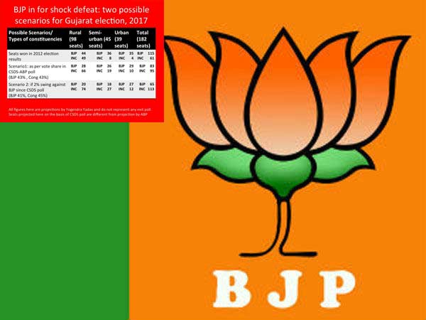 அனைத்து டிவி சேனல்களுமே குஜராத்தில் பாஜக ஆட்சியமைக்கும் என தெரிவித்தன. ஆனால் சஹாரா டிவி மட்டும்தான் அதிகபட்சமாக 120 சீட்டுகள் வரை பாஜக வெல்லும் வாய்ப்புள்ளது என கூறியது. பிற சேனல்கள் அதைவிட குறைவான சீட்டுகளையே சுட்டிக்காட்டுகின்றன. இதனால் பாஜக முன்னிலை பெற்றாலும் அறுதி பெரும்பான்மை பெறுமா என்ற கேள்வி எழுந்துள்ளது.