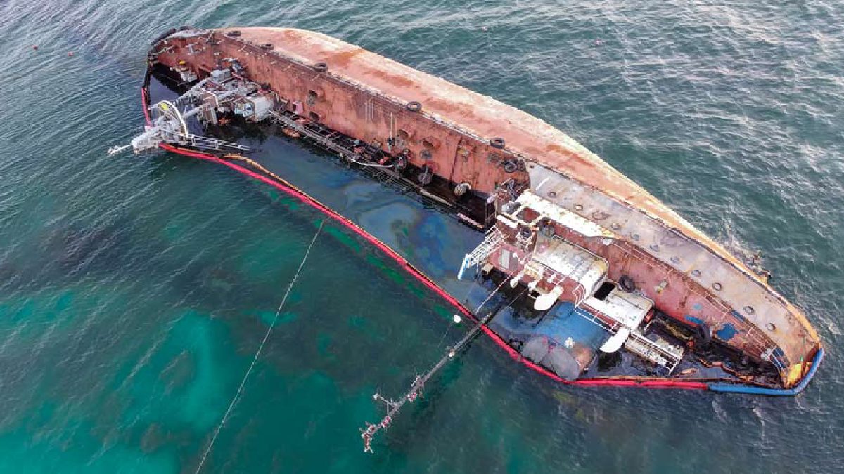 கடலில் கப்பல் தலைகீழாக கவிழ்ந்த நிலையில் இருப்பதாக தெரிவிக்கப்பட்டுள்ளது. எனினும், கடலில் எண்ணெய் கசிவு குறித்த எந்த தகவலும் இன்னும் உறுதி செய்யப்படாமல் உள்ளது.