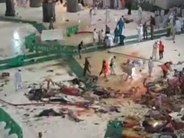 செளதியின் மெக்கா பெரிய மசூதியில் ஆயிரக்கணக்கான யாத்ரீகர்கள் ஹஜ் யாத்திரைக்காக வருகை தந்திருந்தனர். அங்கு வீசிய பலத்த காற்று, மழையால் மசூதி அருகே நிறுத்தி வைக்கப்பட்டிருந்த கிரேன் இரண்டாக முறிந்து கட்டிடம் மீது விழுந்தது.