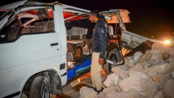 பாகிஸ்தானின் பலூசிஸ்தான் மாகாணத்தின் தலைநகர் குவேட்டாவில் இருந்து கராச்சி நோக்கி சொகுசு பஸ் ஒன்று 48 பயணிகளுடன் இன்று அதிகாலை சென்று கொண்டிருந்தது. இதில் பலூசிஸ்தானின் லாஸ்பேலா பகுதியை பஸ் கடக்க வேண்டி இருந்தது. இந்த பாதை மிகக் குறுகலான சாலையை கொண்ட ஒரு மலைப்பாதை ஆகும். எனவே, 20 கி.மீ. வேகத்திற்கு மேலே இங்கு செல்லக்கூடாது என்பது விதி.
