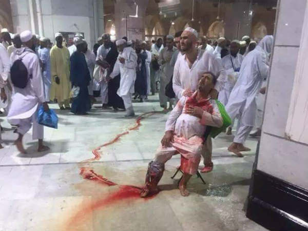 அதனால் கூரையின் ஒரு பகுதி உடைந்து விழுந்தது. இதனால் மசூதிக்குள் இருந்த நூற்றுக்கணக்கான ஹஜ் யாத்ரீகர்கள் கட்டிட இடிபாடுகளில் சிக்கிக்கொண்டனர். இந்த கோர விபத்தில் 107 யாத்ரீகர்கள் பரிதாபமாக பலியானார்கள். 238 பேர் படுகாயம் அடைந்தனர்.