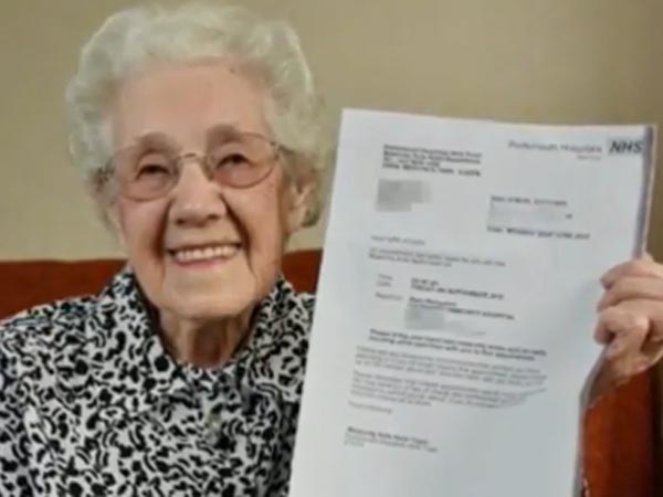 மூன்று குழந்தைகளின் மூலம் பிறந்த 20 பேரப்பிள்ளைகளுடன் வெஸ்ட் சூஸெக்ஸ் பகுதியில் வாழ்ந்துவரும் டோரிஸ் என்ற அந்தப் பெண்ணுக்கு ஃபரேஹாம் கம்யூனிட்டி மருத்துவமனை கடந்த மாதம் கடிதம் ஒன்றை அனுப்பியது.