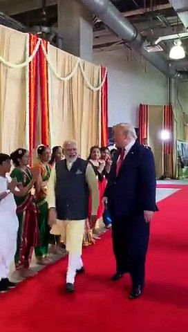 இந்த நிகழ்ச்சியில் கலந்து கொள்ளுமாறு அமெரிக்க அதிபர் டொனால்ட் டிரம்புக்கு மோடி அழைப்பு விடுத்திருந்தார். அந்த அழைப்பை ஏற்று டிரம்பும் வந்திருந்தார். அப்போது அவருக்கு சிறுவர்கள், சிறுமிகள் வரவேற்பு அளித்தனர்.