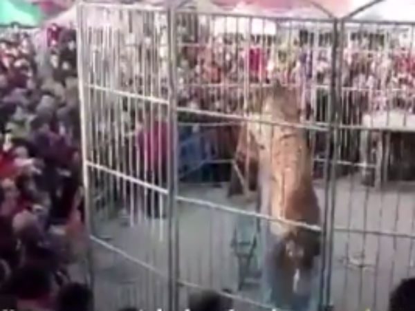 வெளியே வந்த இந்த புலி உடனடியாக மக்கள் கூட்டத்திற்குள் புகுந்தது. மேலும் அங்கு இருந்த மக்கள் அனைவரையும் தாக்க தொடங்கியது. காவலாளிகள் அந்த புலியை எப்படி பிடிப்பது என்று தெரியாமல் முழித்து இருக்கின்றனர். மேலும் புலியின் பயிற்சியாளர் இல்லாத காரணத்தால் அந்த புலி யார் பேச்சையும் கேட்காமல் அனைவரையும் தாக்கி இருக்கிறது.