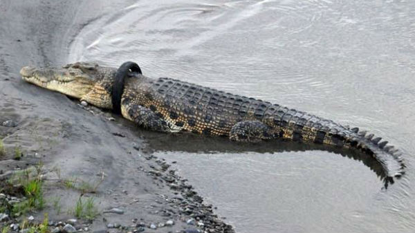 கழுத்தில் சிக்கிய டயர்... செத்துக் கொண்டிருக்கும் முதலை.. மீட்பவர்களுக்கு பரிசு அறிவிப்பு