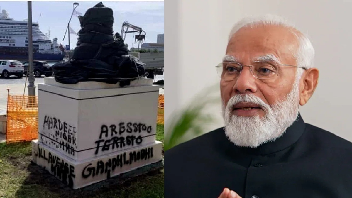 மோடி இத்தாலி பயணத்துக்கு காலிஸ்தான் தீவிரவாதிகள் எதிர்ப்பு- காந்தி சிலை தகர்ப்பால் டென்ஷன்!