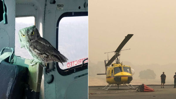 டேன் ஆல்பினர் என்ற பைலட் ஓட்டிச் சென்ற ஹெலிகாப்டர் இதுபோல தீயை அணைக்கும் பணியில் ஈடுபட்டிருந்தார். மேலிருந்தடி கீழே தண்ணீர் ஊற்றி அணைத்துக் கொண்டிருந்தபோது திடீரென அந்த ஹெலிகாப்டருக்குள் ஒரு ஆந்தை பறந்து வந்து உட்கார்ந்தது. அதைப் பார்த்த டேன் அதிர்ச்சி அடைந்தார். இப்படி ஒரு பறவை திடீரென உள்ளே புகுந்ததால் அவர் முதலில் பீதியடைந்து விட்டார்.