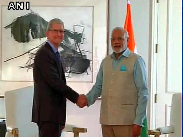 — ANI (@ANI_news) September 27, 2015 டிம் குக் கூறுகையில், "இந்தியாவுக்கும், ஆப்பிள் நிறுவனத்துக்கும் நெடுங்காலமாக தொடர்பு உள்ளது. எங்கள் நிறுவன நிறுவனர் ஸ்டீவ் ஜாப்ஸ், வாழ்க்கையில் உத்வேகம் பெறுவதற்காக இந்தியாவுக்குதான் சென்றிருந்தார்" என்று தெரிவித்தார்.